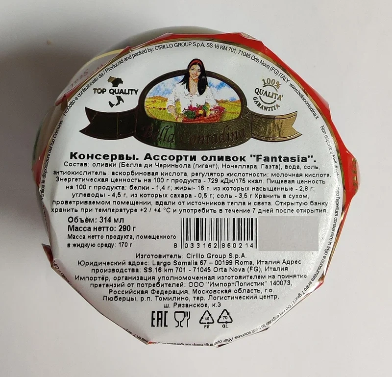 Оливки Bella Contadina Fantasia ассорти, 290г