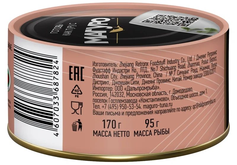 Тунец желтоперый Магуро филе-кусочки в масле, 170г