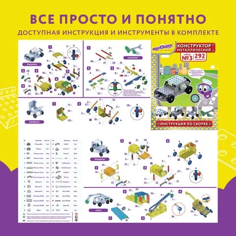 Конструктор металлический ЮНЛАНДИЯ 'Для уроков труда №3', развивающий, 292 элемента, 104681