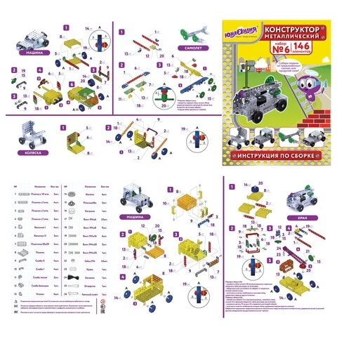 Конструктор металлический ЮНЛАНДИЯ 'Для уроков труда №6', развивающий, 146 элементов, 104684