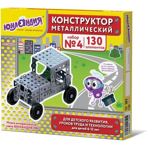 Конструктор металлический ЮНЛАНДИЯ 'Для уроков труда №4', развивающий, 130 элементов, 104682