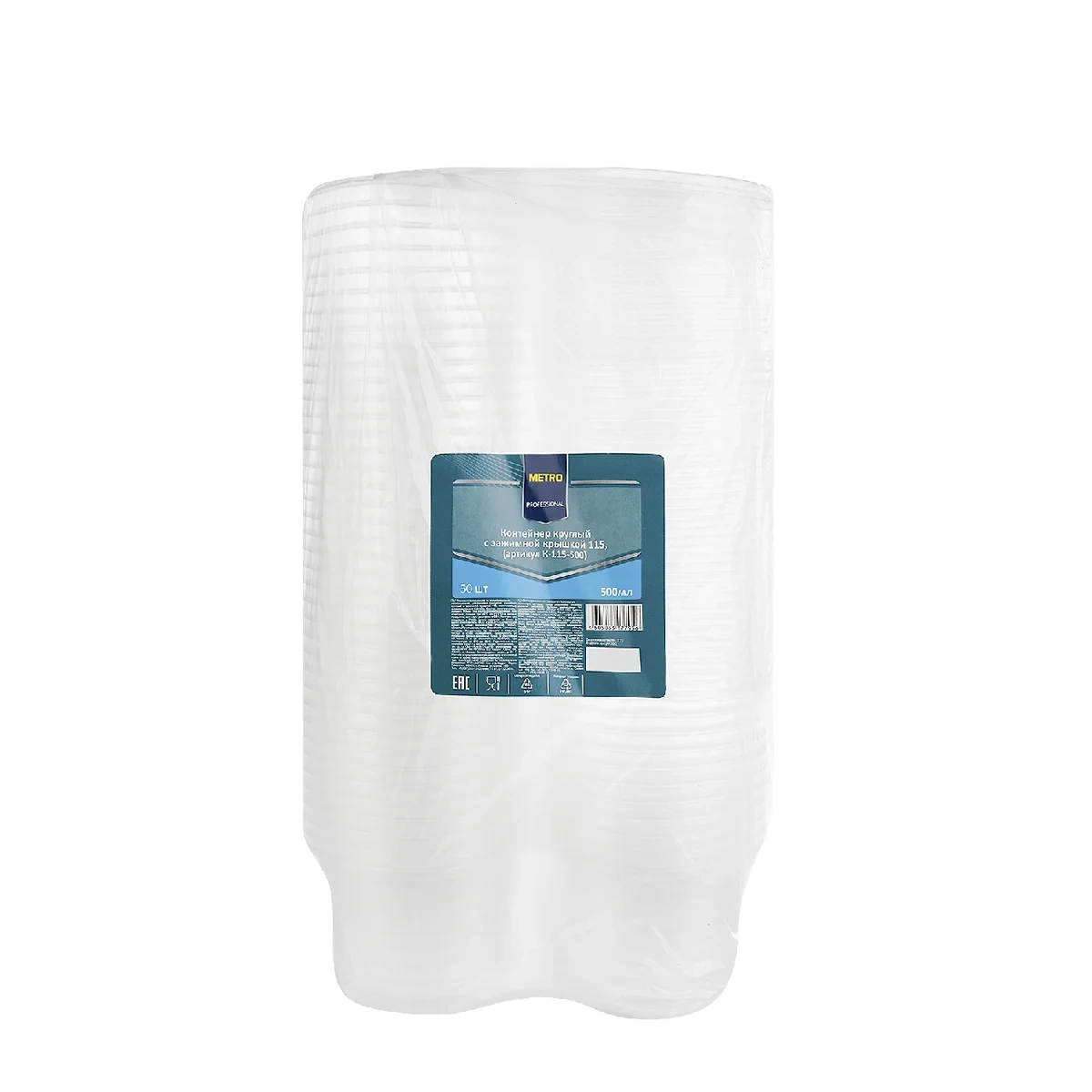 METRO PROFESSIONAL Контейнер + крышка 11.5 х 8.2см на 500 мл — надежное и функциональное решение для хранения и переноски продуктов. Обеспечивая герметичность, эта емкость сохраняет свежесть и вкус блюда, исключая протекания и неприятные запахи. Контейнер сделан из безопасного полипропилена, поэтому подходит для разогрева в СВЧ. Прозрачный материал позволяет видеть содержимое без необходимости его открывать. Емкость прочная и легко моется. Контейнер удобно использовать на автоматических линиях, благодаря возможности запайки. Это особенно полезно для предприятий пищевой промышленности, которые массово производят и упаковывают продукты. Емкость проходит пастеризацию и стерилизацию, что обеспечивает максимальную герметичность упакованной пищи. Она подходит для продуктов, которые требуют специальных условий хранения или должны быть сохранены длительный срок. Такой контейнер может использовать для упаковки еды на вынос, а также для организации питания в офисе или на даче. Он поставляется в комплекте, в который включены контейнер и крышка. Контейнеры от бренда METRO PROFESSIONAL – это надежное решение для сохранения свежести и вкуса различных продуктов, а также незаменимый помощник на кухне и в повседневной жизни. В наборе 50 штук.