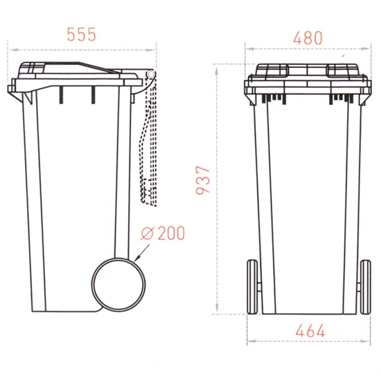 Мусорный бак 120 л – это самый маленький контейнер для ТБО в линейке баков, выпускаемых компанией.