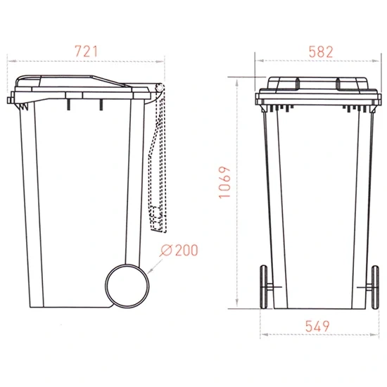 Контейнер 240л производится методом литья под высоким давлением из высококачественного полимерного сырья – ПЭНД (первичный полиэтилен низкого давления).