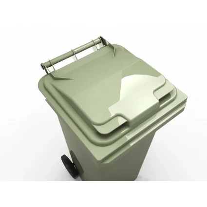 Бак для мусора 240л имеет крышку и два колеса, что облегчает обращение с ним и его передвижение. Он выпускается в четырех цветах (зеленом, желтом, синем и сером).