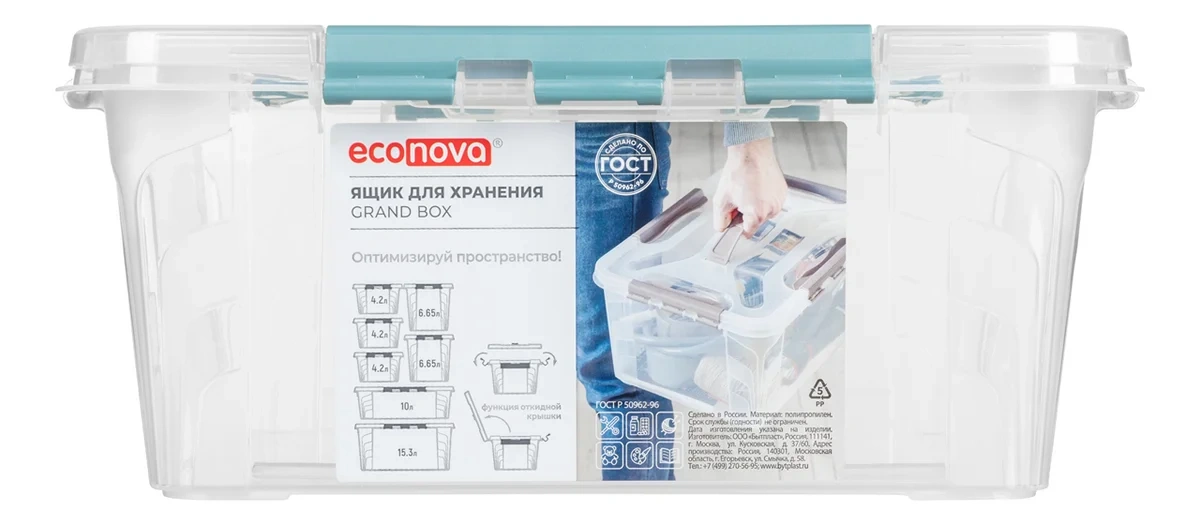 | Особенности | прозрачный; ручки для переноски; с крышкой |