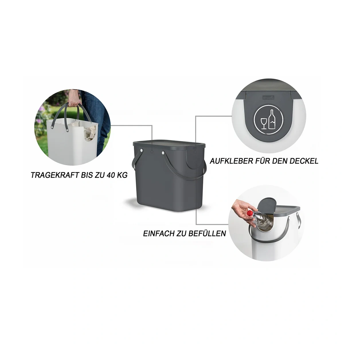 Контейнер для хранения Rotho Albula серый, 25л отличается универсальностью, высокой степенью прочности, аккуратным внешним видом. Благодаря компактным габаритным размерам модель не занимает большое количество пространства. Небольшой вес упрощает процесс перемещения. Урна прямоугольной формы оснащена гибкими ручками для быстрой переноски. Конструкцией предусмотрены съемная крышка и специальный клапан, открывающий доступ к боковой загрузке хлама – отходов дома или кухни. При желании ведра можно штабелировать друг на друга. Корпус бака произведен из прочного, устойчивого к механическим повреждениям – царапин, потертостей пластика высокого качества. В комплекте поставляются специальные шесть этикеток, которые упрощают процесс использования контейнеров для раздельной сортировки мусора на разные категории – бумагу, пластик, стекло и другие. При необходимости контейнер можно легко очищать от загрязнений. Ведро способно выдерживать нагрузку до 25 кг.