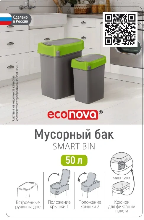 Контейнер для раздельного сбора мусора Smart Bin 50л от бренда Econova изготовлен из прочного пластика. Удобная система открывания крышки позволит выбросить мусор в ведро даже с занятыми руками, просто толкнув створку вниз. Крышка может фиксироваться в открытом положении для крупного мусора. Цветовая дифференциация ободов незаменима для организации раздельного сбора мусора. Контейнер Smart Bin 50л имеет специальное крепление для мусорных пакетов, легко моется, блокирует неприятные запахи, препятствуя их распространению. Контейнер отлично подойдет для использования в общественных помещениях и зонах с высокой проходимостью, таких как торговые комплексы, бизнес-центры, жилые комплексы, аэропорты и транспортные терминалы, фитнес-центры, салоны красоты, торговые помещения.