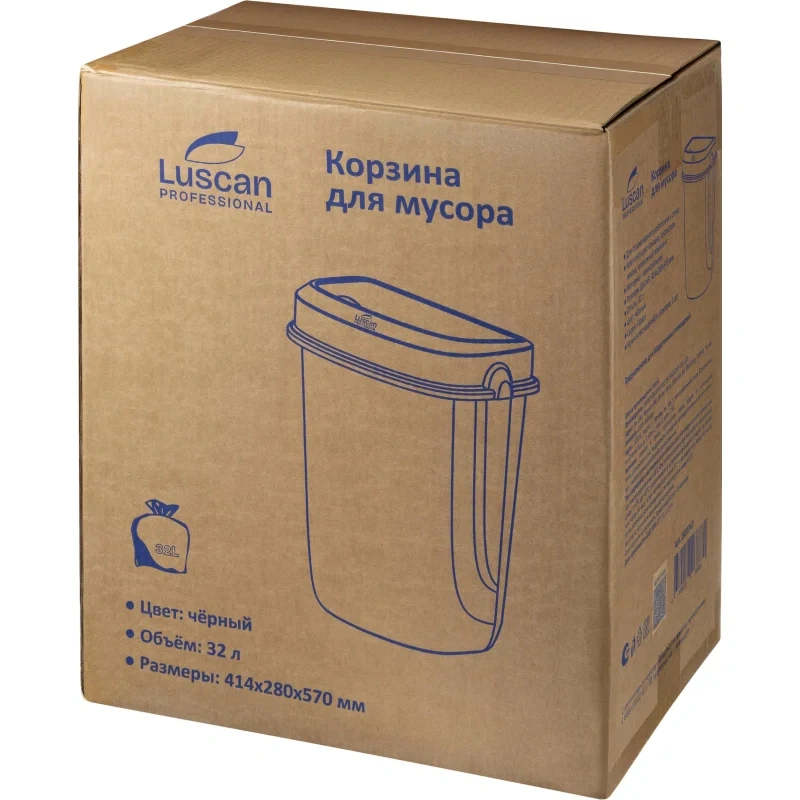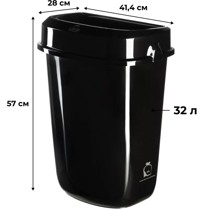 Контейнер для мусора подвесной Luscan Professional 32 л пластик черный (57×41.39×28 см).