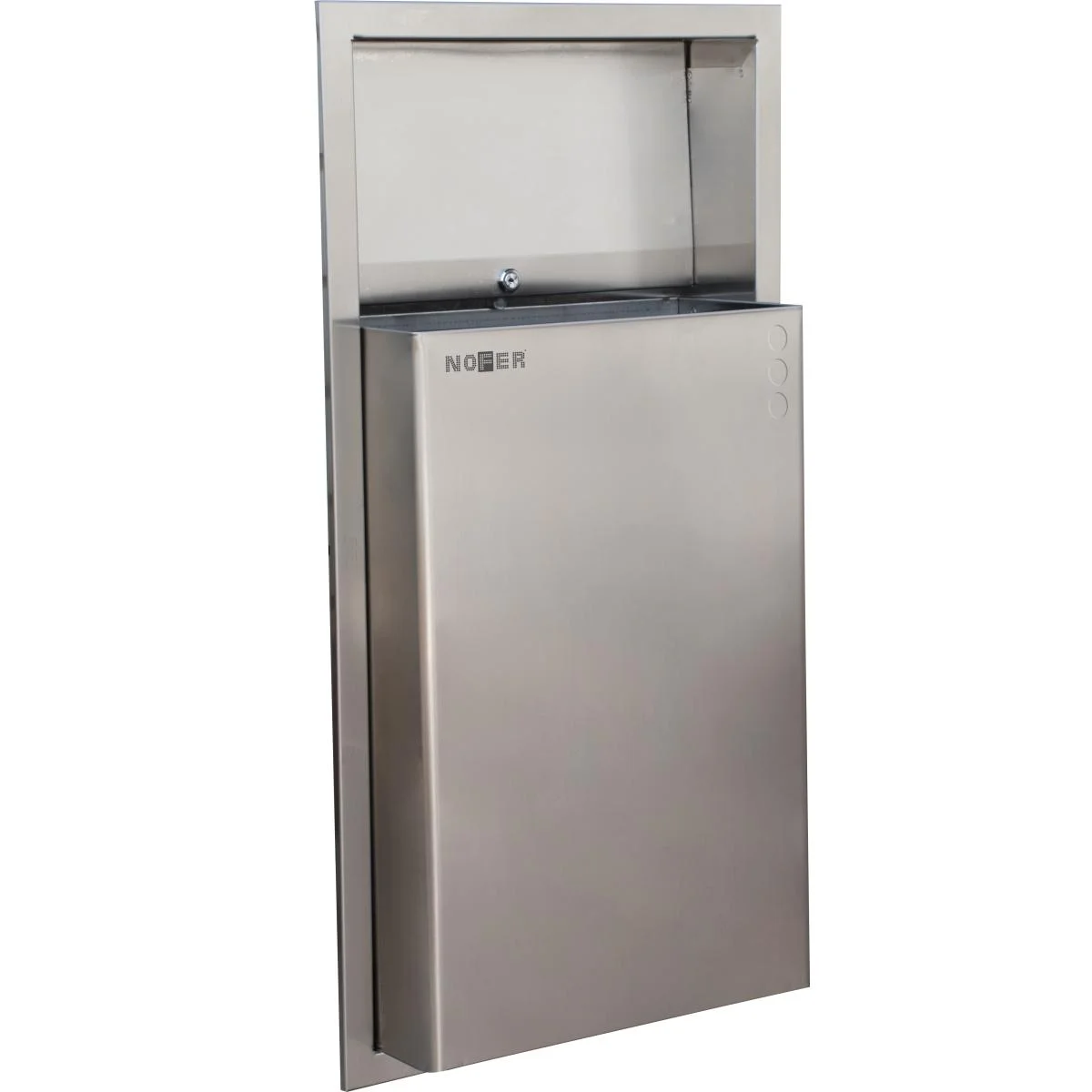 Контейнер для мусора с распашной дверью с замком из нержавеющей стали AISI 304.Предназначен для углубления в стену. Полностью сварная конструкция с полированными краями для безопасного использования.