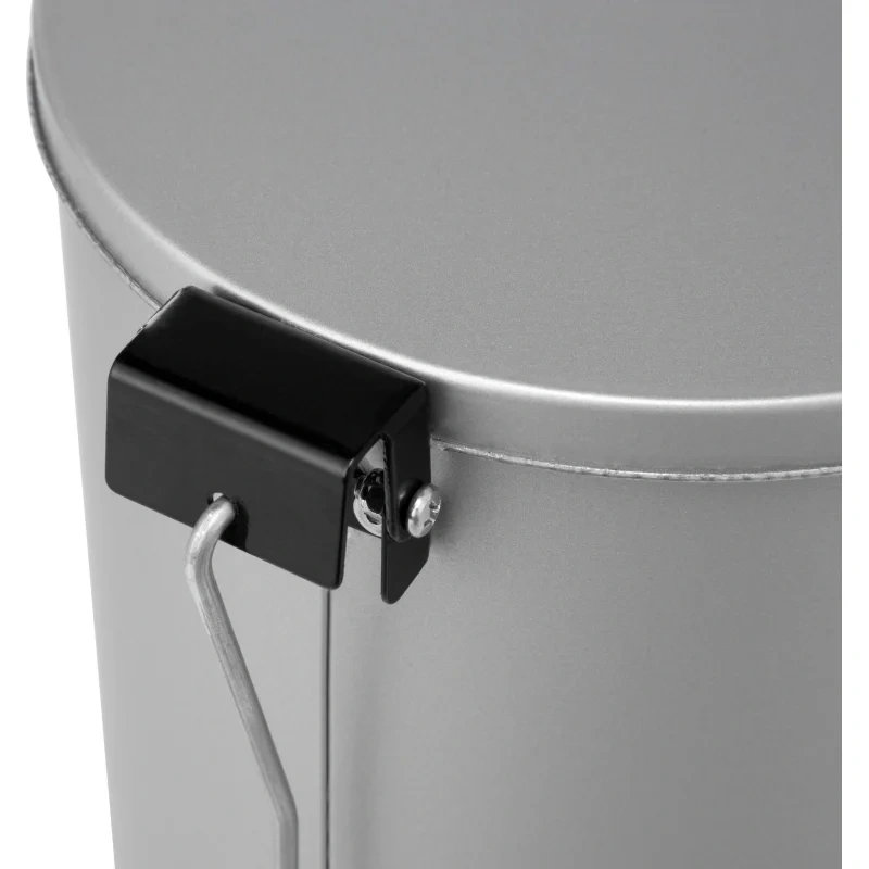 Круглое ведро для мусора с педалью выполнено из оцинкованной стали толщиной 0.4-0.5 мм с полимерным покрытием. Толщина металла и наличие дополнительных рёбер жёсткости снизу и сверху металлического бака делают его гораздо более стойким к деформационным воздействиям на корпус. Снабжено внутренним кольцом-держателем для мусорных пакетов. Использование оцинкованной стали с полимерным покрытием обуславливает возможность использования ведра как в сухих, так и во влажных и холодных помещениях, а также под открытым небом. Размер ведра: диаметр 20 см, высота 31 см. Цвет: чёрный. Вес: 1.3 кг.