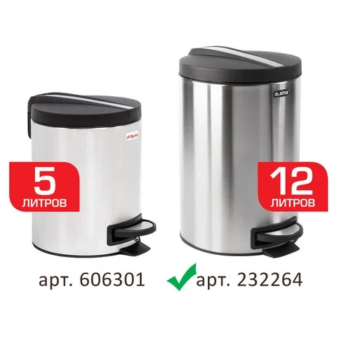Мусорное ведро с педалью Laima Modern 12л, матовый металлик, с внутренним ведром, 232264