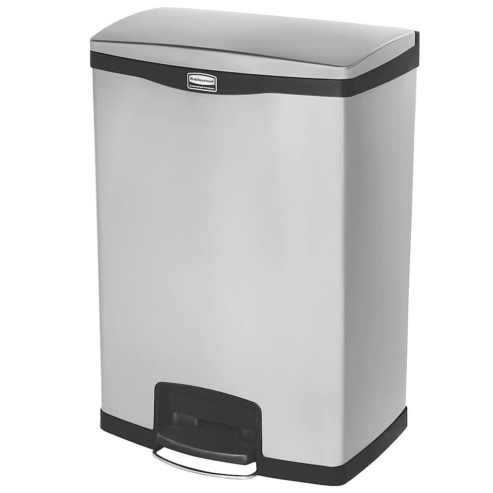 Контейнер для мусора с педалью Rubbermaid Step-On 90л, металлик/черный, 1901999