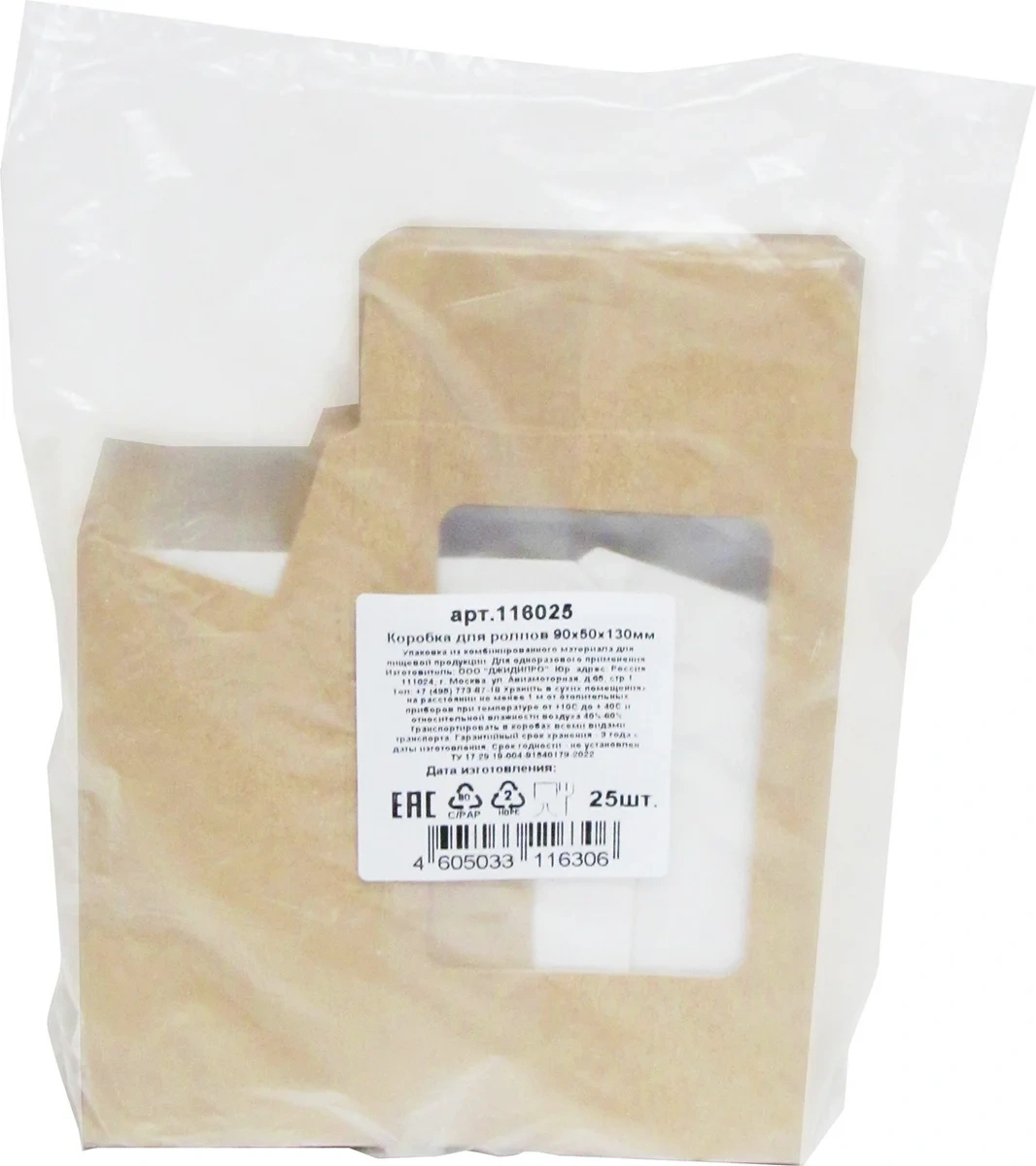 Контейнер для роллов с окном картонный 9 x 5 x 13см, 300мл х 25шт