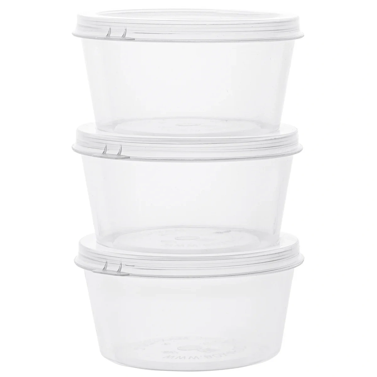 Контейнер для соусов объемом 80мл представляет собой маленькую емкость, предназначенную для хранения и удобного использования различных соусов. Он изготовлен из прозрачного полипропилена, чтобы можно было увидеть содержимое контейнера. Такие контейнеры часто используются в ресторанах, кафе и домашней кухне для упаковки и хранения маленьких порций соусов, таких как кетчуп, майонез, горчица и так далее. Они удобны в использовании и облегчают подачу соусов к пище.