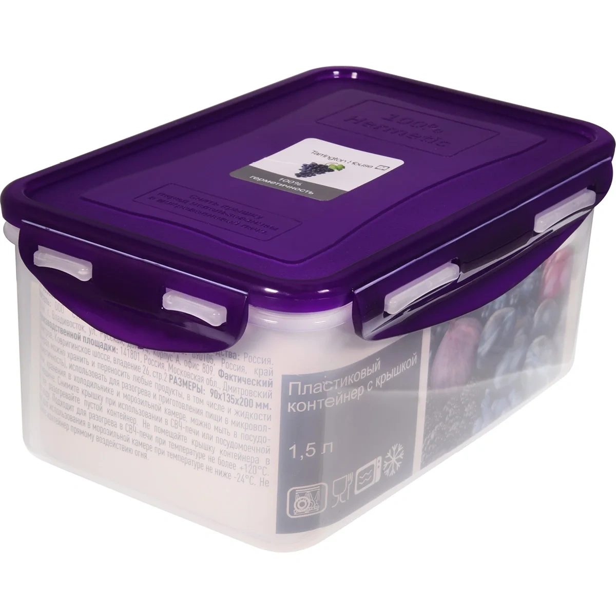 Tarrington House Контейнер пластиковый герметичный, 1.5л — полезная емкость, которая всегда пригодится на кухне. Она изготовлена из высококачественного пищевого пластика. Этот материал не вступает в реакцию с продуктами, не выделяет химические вещества. Прозрачные стенки контейнера позволяют легко определить его содержимое. С помощью емкости с крышкой вы сможете организовать хранение продуктов в холодильнике, подготовить пищу заранее или удобно брать еду с собой в дорогу. Контейнер подходят для использования с горячими и холодными продуктами, обеспечивая надежное сохранение свежести блюд. Изделие легко моются вручную или в посудомоечной машине, сохраняя свою первоначальную презентабельность даже после многократного использования.
