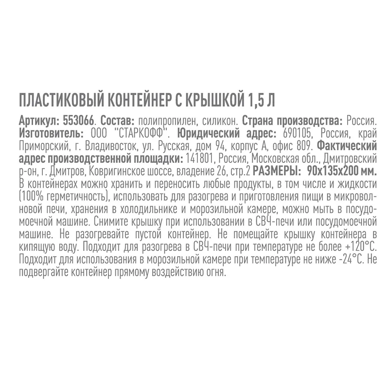 | Комплектация | контейнер - 1 шт.; крышка - 1 шт. |