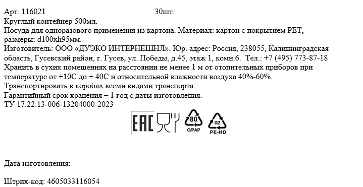 Отличный вариант для упаковки овощей, салатов, десертов, нарезок, кондитерских изделий. Подходит для разогревания в микроволновке. При нагревании не деформируется и не выделяет вредных веществ.
