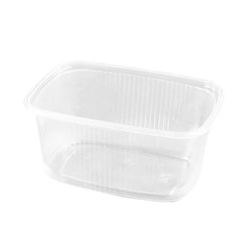 Одноразовый прямоугольный низкий прозрачный ПЭТ контейнер без крышки.