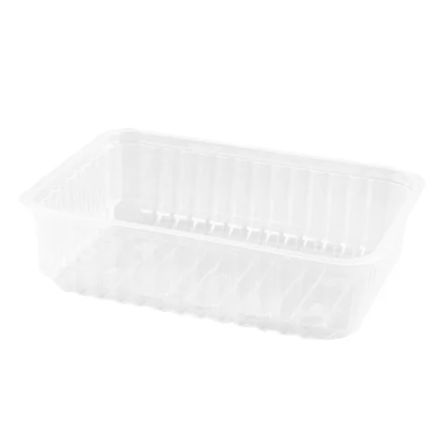 Одноразовый прямоугольный низкий прозрачный ПЭТ контейнер без крышки.