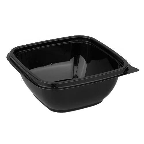 Одноразовый прямоугольный высокий черный ПЭТ контейнер без крышки.