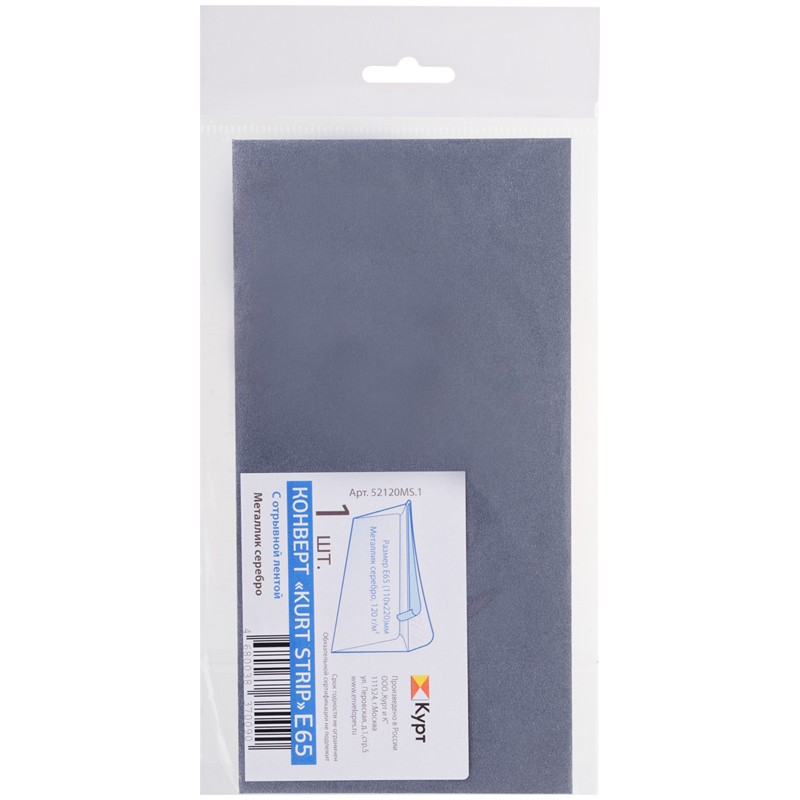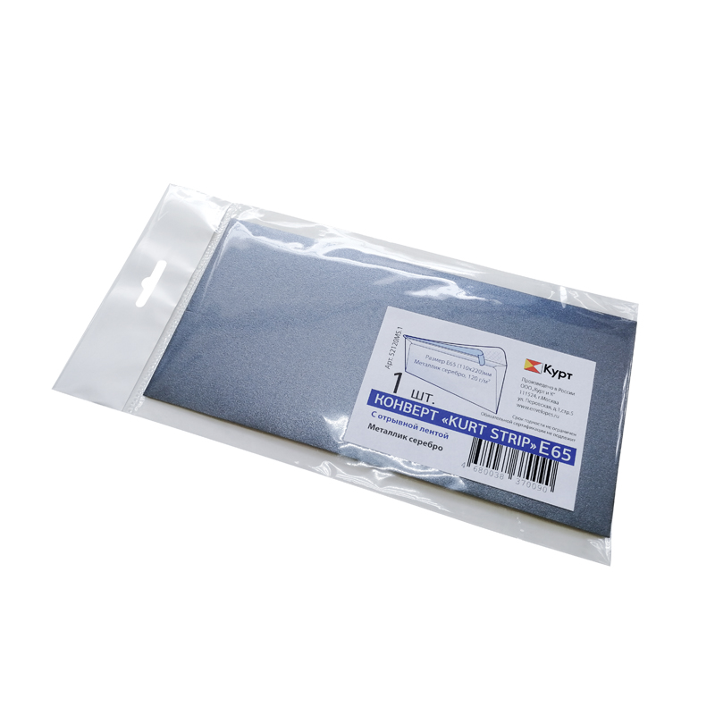 Конверт дизайнерский E65, KurtStrip, 110*220мм, отр. лента, металлик серебро,120г/м2, европодвес
