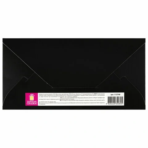 Конверт с надписью 'HAPPY BIRTHDAY!' изготовлен из высококачественного картона плотностью 215 г/м2. Выполнен в черном цвете с цветочным принтом. Отделка - выборочный УФ-лак. Размер - 166х82 мм.