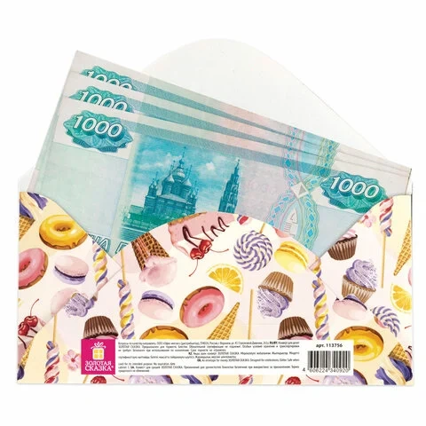 Конверт для денег Золотая Сказка На Сладкую Жизнь!, Десерт, 166х82мм