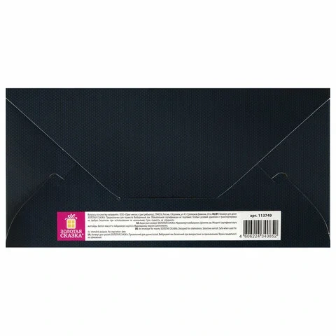 Конверт с надписью 'ПОЗДРАВЛЯЕМ!' изготовлен из высококачественного картона плотностью 215 г/м2. Выполнен в синем цвете с изображением части делового костюма. Отделка - выборочный УФ-лак. Размер - 166х82 мм.
