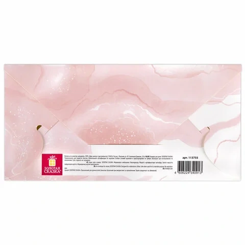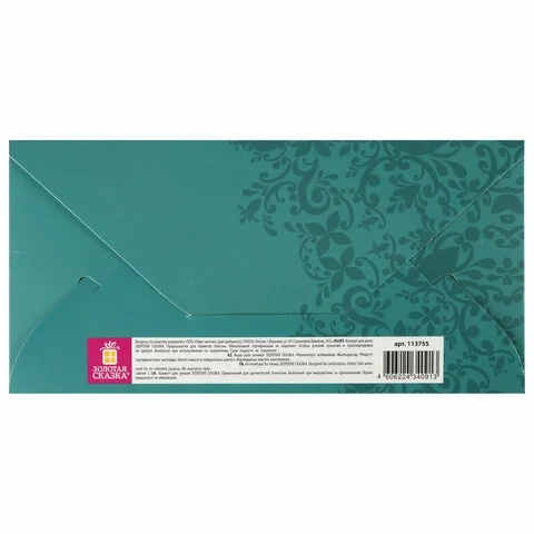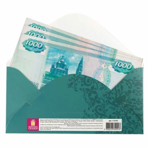 Конверт для денег Золотая Сказка Самой Красивой Паре, Зеленый, 166х82мм