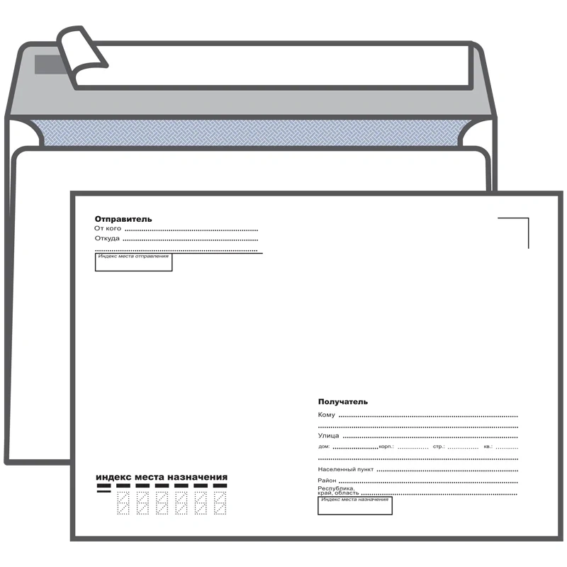 Конверт C5, 162*229 мм, подсказ КУДА-КОМУ, отрывная силиконовая лента, внутренняя запечатка, 80 г/м2