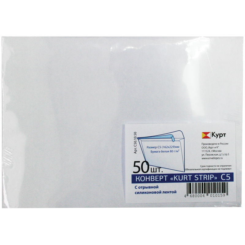 Конверт почтовый Курт C5 белый, 162х229мм, 80г/м2, 50шт, стрип
