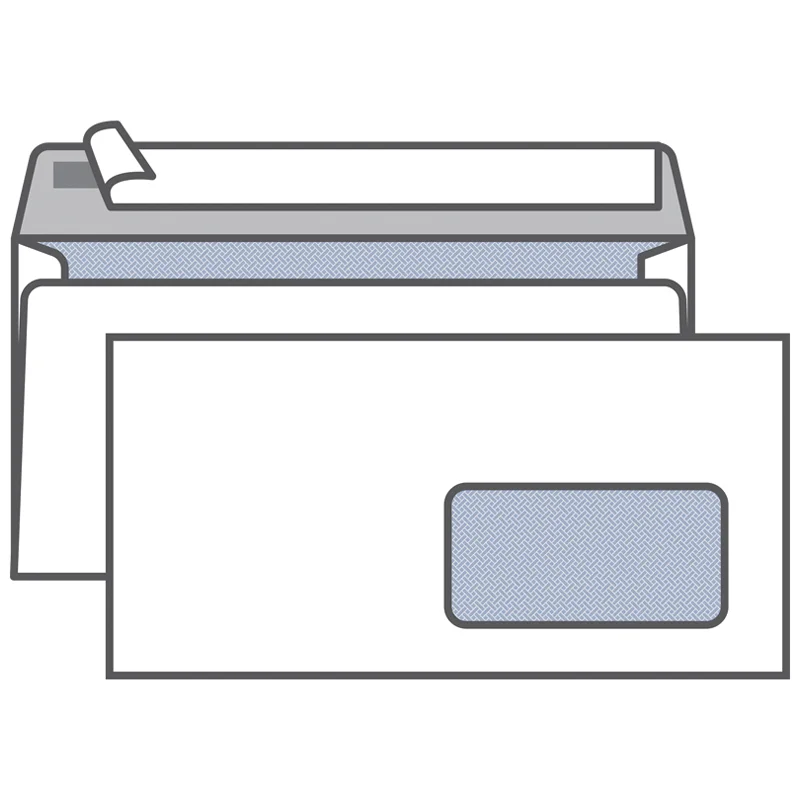 Конверт E65, 110*220 мм, отрывная силиконовая лента, окно 45*90 справа внизу внутренняя запечатка, 80 г/м2, упаковка 100 шт.