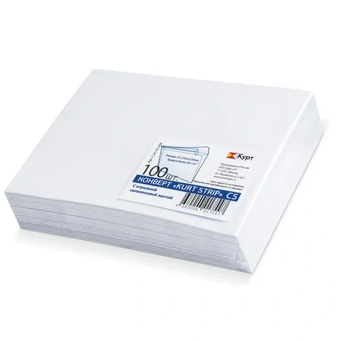 Конверт почтовый Курт С5 белый, 162х229мм, 80г/м2, 100 шт, стрип