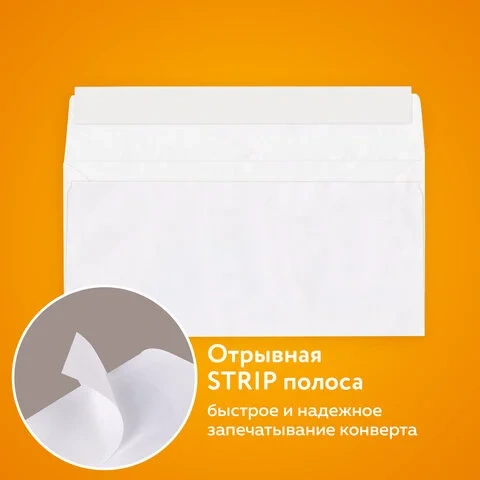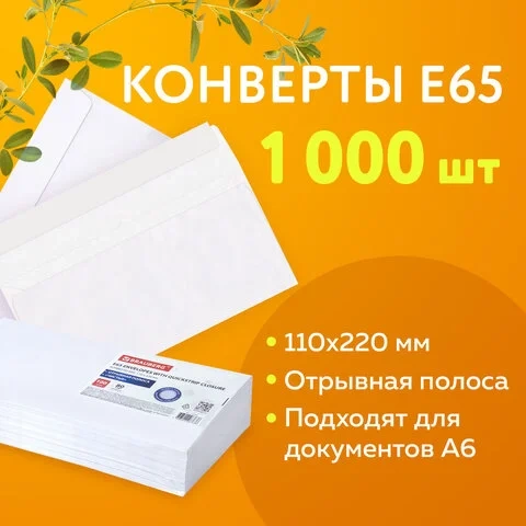 Конверт почтовый Родион Принт Е65 белый, 110х220мм, 80г/м2, 1000шт, стрип