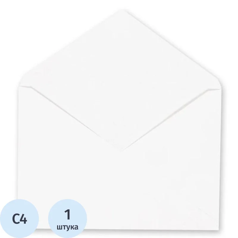 Конверт Ряжский C4 115 г/кв.м белый (500 штук в упаковке) 229×324 мм выполнен из офсета 115 г/кв.м, не имеет клеевого нанесения на клапане, клапан треугольный. Предназначены для пересылки 50 листов А4 формата, что равно 250 г веса. Удобен для пересылки документов формата A4. Упакован в короба по 500 штук. Срок годности не ограничен. Плотность белизны: 130 — 136 г/кв.м.