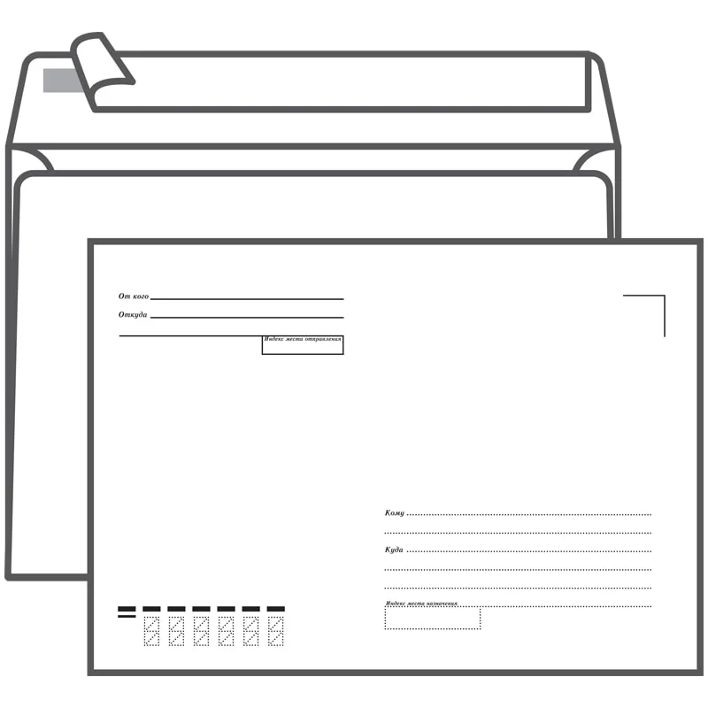 Конверт с подсказом, без окна. Формат С5 соответвует размеру 162х229мм. Служит для рассылки документов А5 без сложения и А4, сложенных вдвое. Клапан конверта крепится с помощью отрывной силиконовой ленты