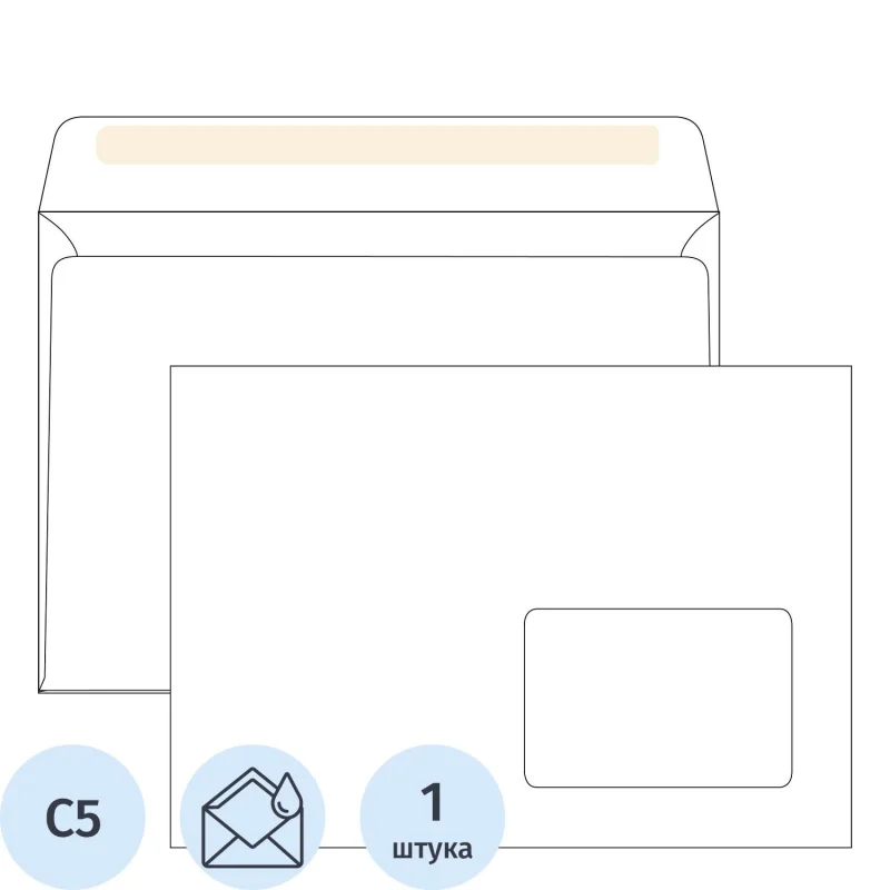 Конверт почтовый Packpost С5, 162х229мм, белый, без заклейки, 80 г/м2, 1000шт/уп