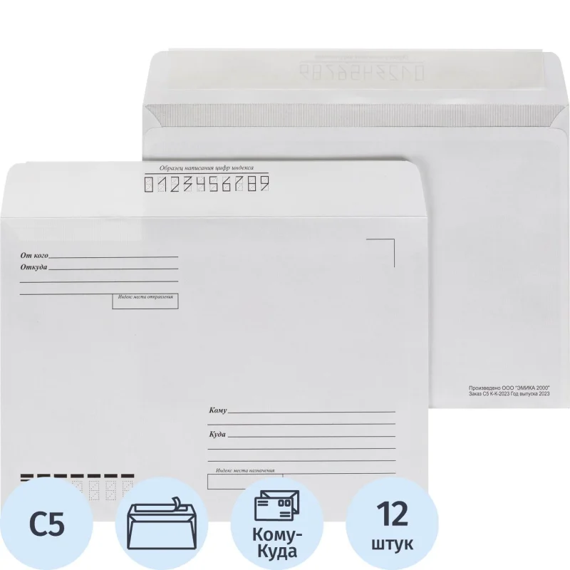 Конверт Ecopost1 почтовый формата С5 имеет размер 162×229 мм. Конверт выполнен из офсетной бумаги и имеет белый цвет. Показатель белизны бумаги — 92-100 %. Плотность бумаги составляет 80 г/кв.м. Лицевая сторона конверта содержит почтовый подсказ «Куда-Кому». Конверт обладает запечаткой (заливкой) с внутренней стороны, обеспечивающей конфиденциальность содержимого: препятствует прочтению вложенных документов или попытке просветить содержимое. Для удобства заклеивания на клапане предусмотрена полоса клея под легко удаляемой силиконовой лентой. Для облегчения вскрытия клапан снабжен специальной отрывной полосой. Предназначен для отправки листов А4, сложенных вдвое. Упакованы в пленку по 100 штук. Срок хранения 1 год.