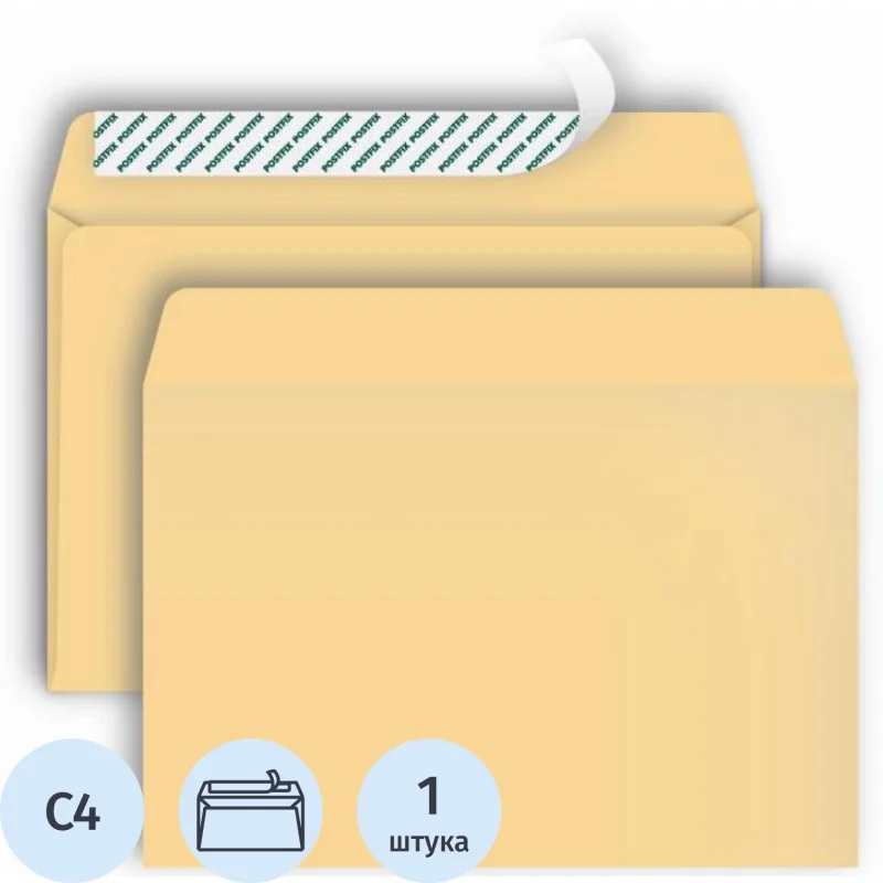Конверт почтовый Bong С4 бежевый, 229х324мм, 90г/м2, 250шт, стрип