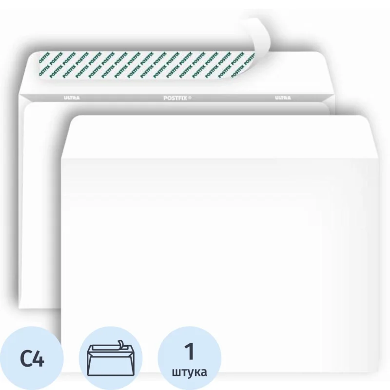 Конверт почтовый Ecopost С4 белый, 229х324мм, 90г/м2, 250шт, стрип