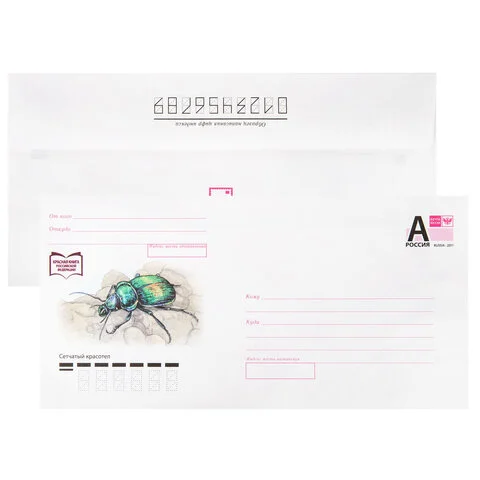 Конверты маркированные ПОЧТА РОССИИ 'литера А', E65 (110х220 мм), отрывная лента, 'Куда-Кому', 80 г/