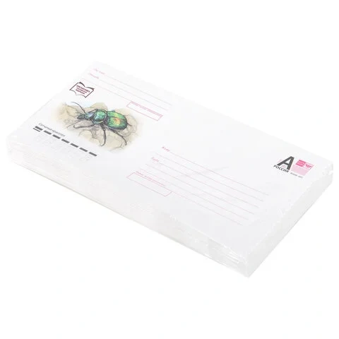 Конверты маркированные ПОЧТА РОССИИ 'литера А', E65 (110х220 мм), отрывная лента 'Куда-Кому', 80 г/м