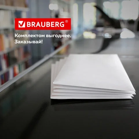 Конверт почтовый Brauberg С4, 229х324мм, белый, 90 г/м2, отры. лента, 50шт/уп
