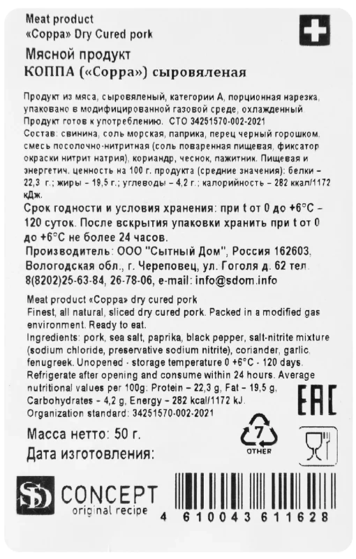 Коппа SD сыровяленая, 50г