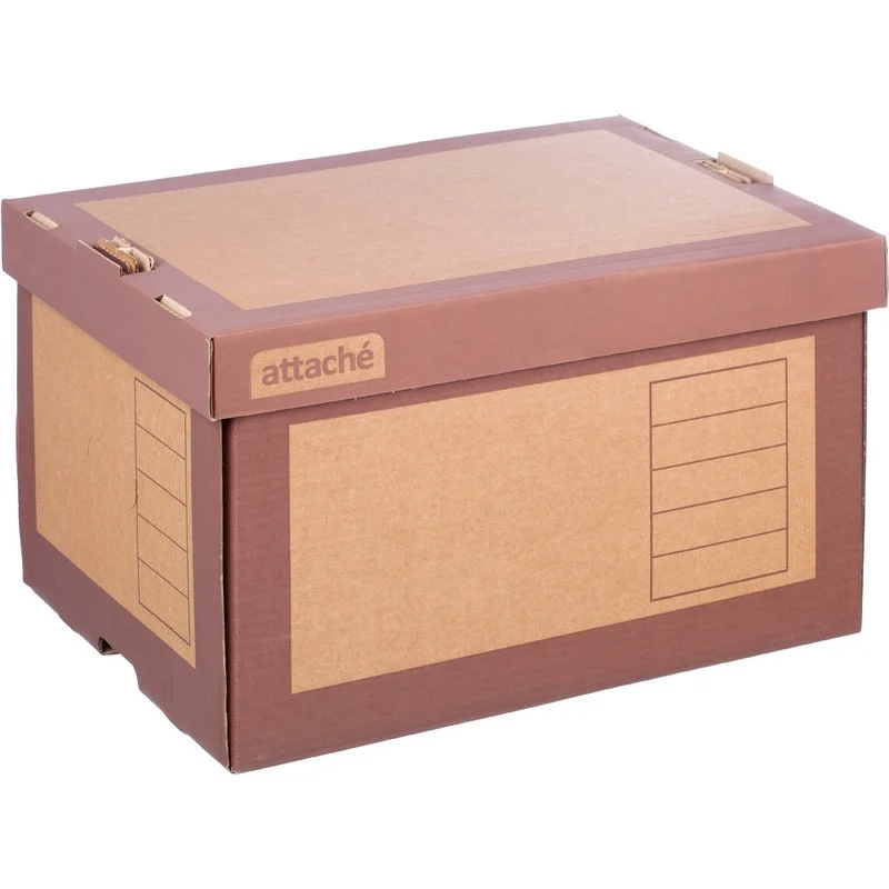 Короб архивный Attache изготовлен из высококачественного гофрокартона Т24 бурого цвета. Вмещает 5 папок с шириной корешка 75 мм. Конструкция короба позволяет легко собирать стеллажные системы произвольной длины и высоты. Короба надежно фиксируются при установке один на другой. Внешние размеры 346×266×466 мм. Внутренние размеры — 410×263×328 мм. Укомплектован съемной крышкой, удобен для хранения документов и их транспортировки. Короб архивный способен выдерживать нагрузку до 20 кг при переноске. Гофрокартон — экологически чистый и пригодный для переработки материал.