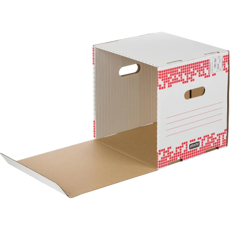 Короб архивный Attache Selection изготовлен из гофрокартона Т24 белого цвета. Предназначен для среднесрочного хранения папок. Крышка открывается сбоку. Вместимость: 4 папки с шириной корешка 75 мм. Имеются поля для подписи по бокам короба. Ручки для удобной транспортировки. Легко собирается. При необходимости короба наращиваются друг на друга. Внешний размер: 332×303×335. Папка выдерживает приблизительно 10 кг. Поставляется в разобранном виде. Гофрокартон — экологически чистый и пригодный для переработки материал.