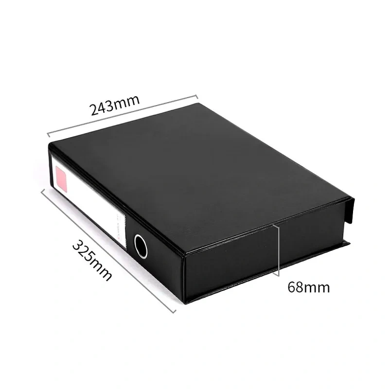 Ширина корешка составляет 65 мм. Короб вмещает 500 листов стандартной плотности. Внешний размер: 243×68×325 мм. Внутренний размер: 243×65×325 мм.