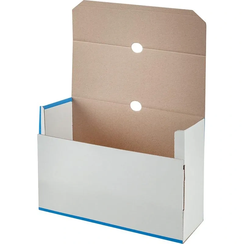 Возможно вертикальное и горизонтальное размещение, на стеллажах или в архивных коробах. Легкая сборка. Крышка короба фиксируется вырубным креплением. На корешке и боковых сторонах есть поля для надписей.