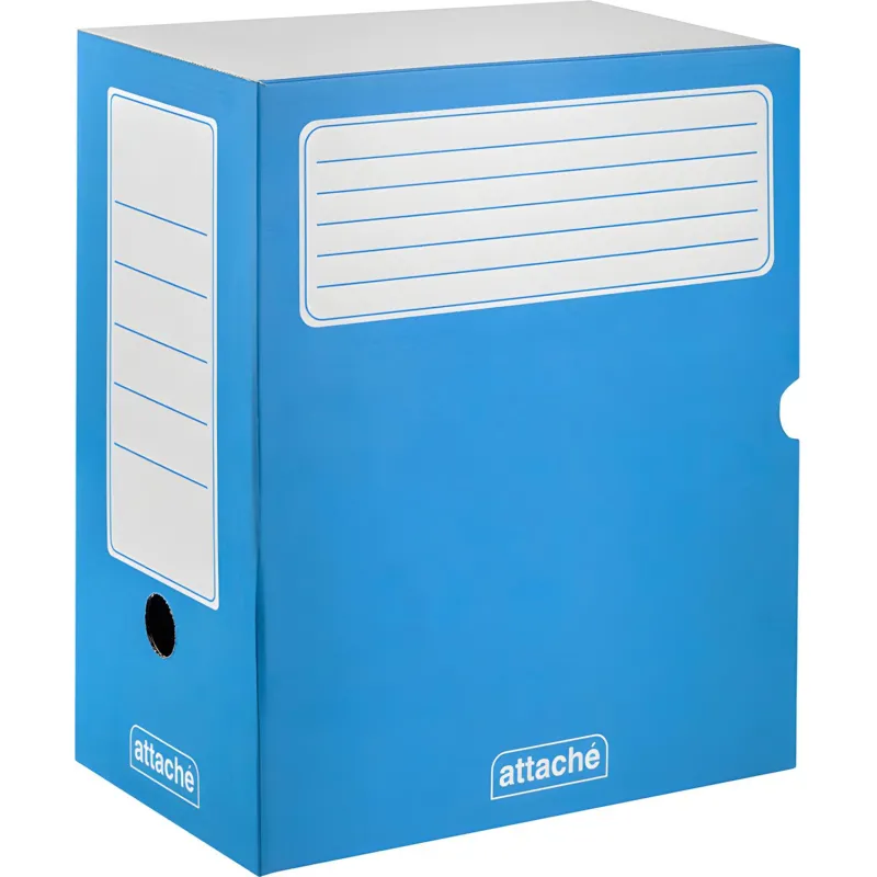 Короб архивный Attache изготовлен из гофрокартона Т22 синего цвета. Предназначен для краткосрочного хранения документации.